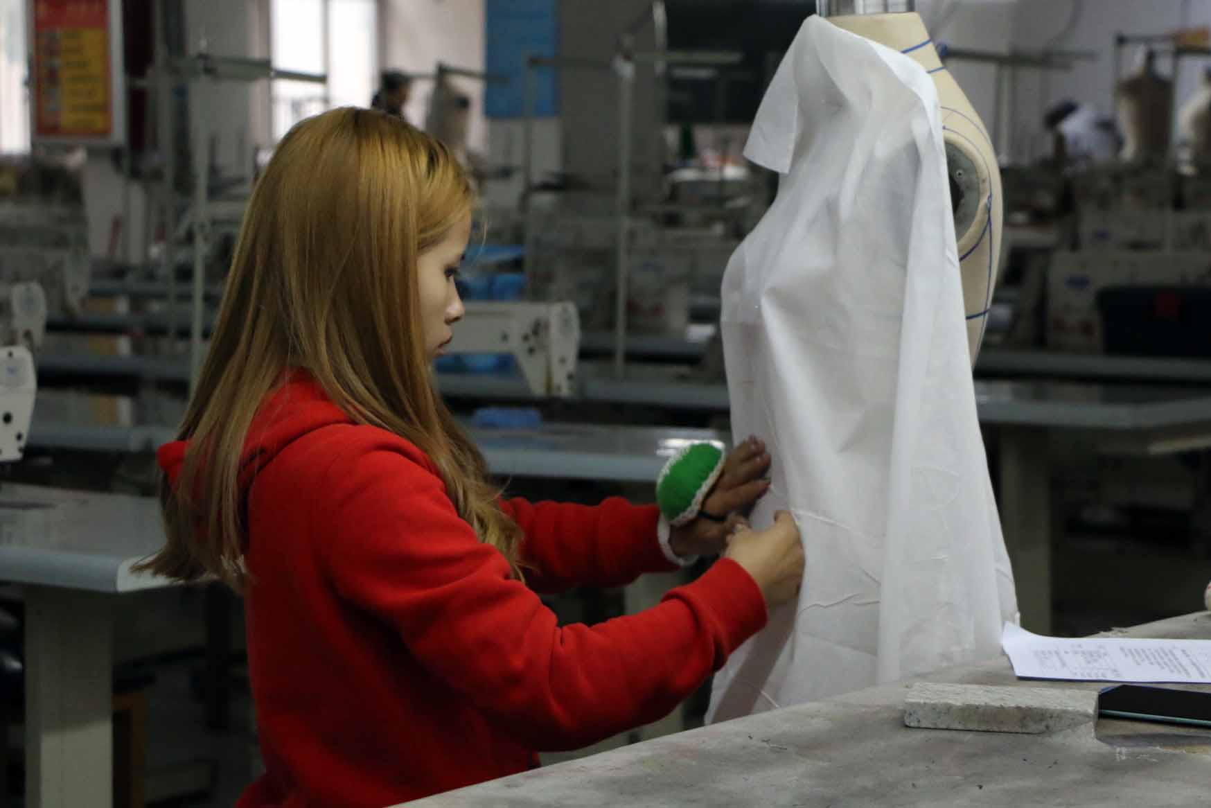 比赛还未开始,参赛者们就提前来到了机房早早等待着。比赛过程中,他们争分夺秒,细致地烫平折皱布料,小心翼翼地裁剪着,认真投入到比赛中去。来自服装工程分院13级服工本科2班的杨中齐是这次比赛的参赛选手之一。他对自己的发挥还是较为满意的,杨中齐在平时就注重提高自己的能力,参赛之前也在练习。他认为在做这款西服时,衣领、袖子时还是会对有些挑战,比赛期间在工艺这个方面花的时间也比较多。服装工程分院13服工本2班的郭雯说:“我觉得本次比赛的难点在领子,主要是分割线太多,比较难处理。希望学弟学妹们能够对不同种类的衣服多做多练,提升自己的对不同类衣服的熟悉度。”服装设计分院14级产品本科1班江玉芬去年参加了初赛,她表示明年还会继续参加,在江玉芬看来,通过参加比赛可以让自己的专业技能有所提高,将平时所学运用到实际当中,是一个提升自己的机会。“希望在服装方面学得更扎实些,明年有更好的比赛成绩。”